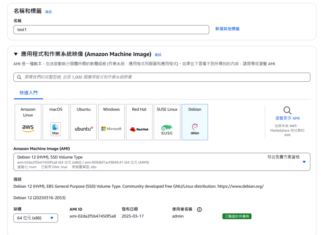 進入頁面設置名稱、使用的系統,這裡我使用 Debian