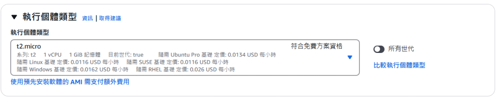 執行個體類型,這是用來選擇機型的,我這裡保持預設