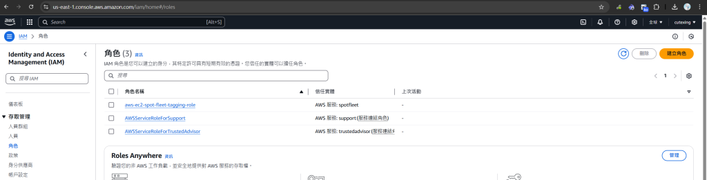 IAM 控制台建立角色