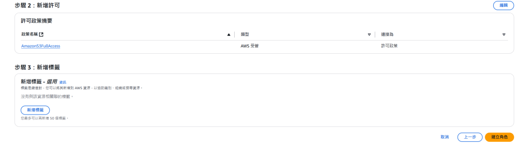 這裡參考了 aws 知識庫內容 : 如何將我的 Amazon EC2 執行個體存取權授予 Amazon S3 儲存貯體?